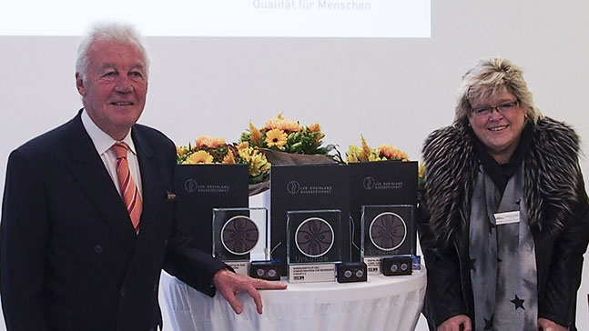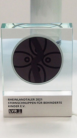Der Verein "Sternschnuppen für behinderte Kinder e.V." (2.v.r.: 1. Vorsitzende Charlotte Häke) aus Grevenbroich hat sich um den Rheinlandtaler verdient gemacht, aufgrund seines vielseitigen Engagements für Kinder und Jugendliche mit Behinderungen sowie ihre Familien. Sie organisieren Freizeitausflüge für Familien und ihre behinderten sowie nicht-behinderten Kinder und ermöglichen so tolle Erlebnisse, die ohne den Verein für die Familien nicht möglich gewesen wären.