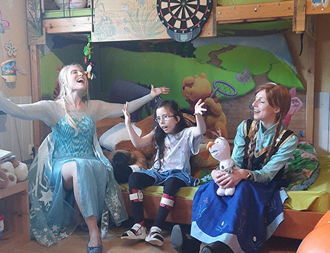 „Was war die Überraschung groß, als es an der Tür schellte und Anna & Elsa persönlich nur für sie zu Besuch kamen. Für Ariana war es ein ganz besonderes Erlebnis und ein lang gehegter persönlicher Traum von ihr, der da in Erfüllung ging. Sie war super aufgeregt und hat die gemeinsame Zeit mit Begeisterung genossen. So glücklich habe ich Ariana schon lange nicht mehr gesehen.“