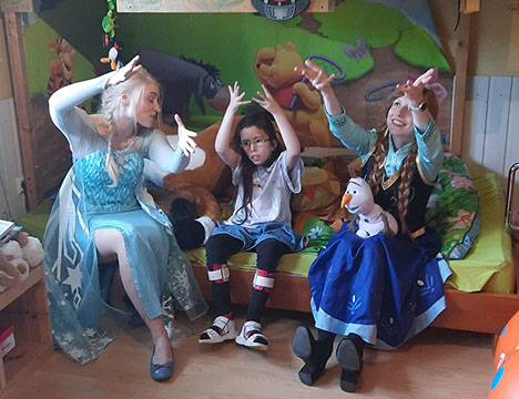 „Was war die Überraschung groß, als es an der Tür schellte und Anna & Elsa persönlich nur für sie zu Besuch kamen. Für Ariana war es ein ganz besonderes Erlebnis und ein lang gehegter persönlicher Traum von ihr, der da in Erfüllung ging. Sie war super aufgeregt und hat die gemeinsame Zeit mit Begeisterung genossen. So glücklich habe ich Ariana schon lange nicht mehr gesehen.“