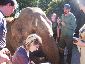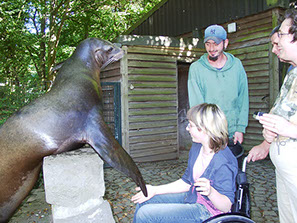 Mit vielen außergewöhnlichen Momenten hinter den Kulissen des Regenwaldhauses und den persönlichen Kontakten von Jacqueline u.a. mit einer Robbe und einem Elefanten unter Anleitung der erfahrenen und sehr sensibel auf das behinderte Mädchen reagierenden jungen Biologin und Pressesprecherin des Krefelder Zoos Petra Schwinn, war dieser Tag für Jacqueline, wie auch ihre Eltern etwas ganz Besonderes .