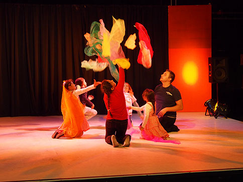 Nach dem Mittagessen wurden dann die Kinder in den 4 Bereichen Tanz, Zirkus (Luft- und Bodenartistik, Balance und Jonglage), Musik und Zauberei und Clownerie – ihren Neigungen entsprechend – detaillierter „ausgebildet“ und Stücke für die anschließende Zirkusvorführung wurden mit ungeheurem Engagement der begeisterten Kinder eingeübt.